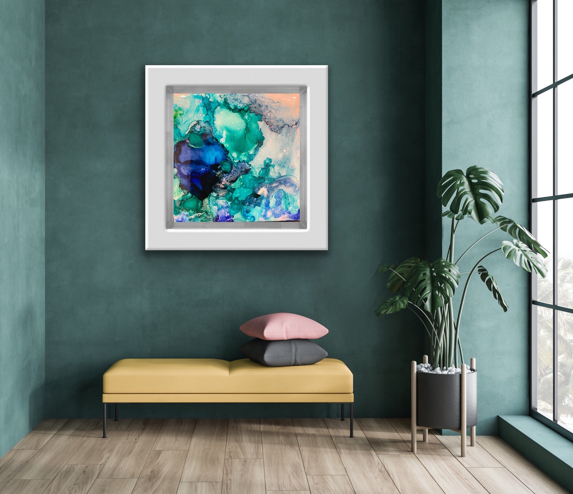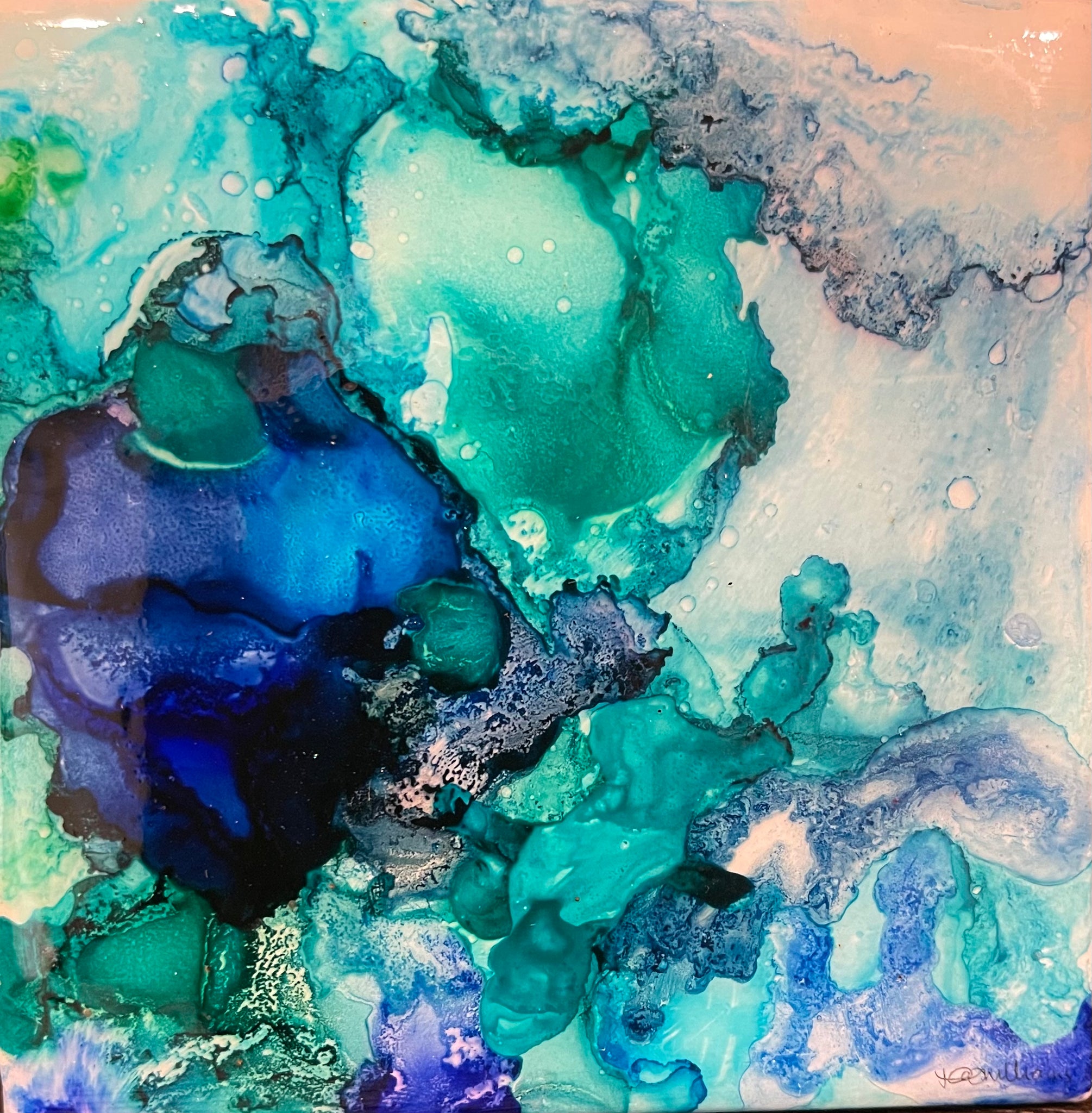 4 x 4in alcohol ink on tile.
