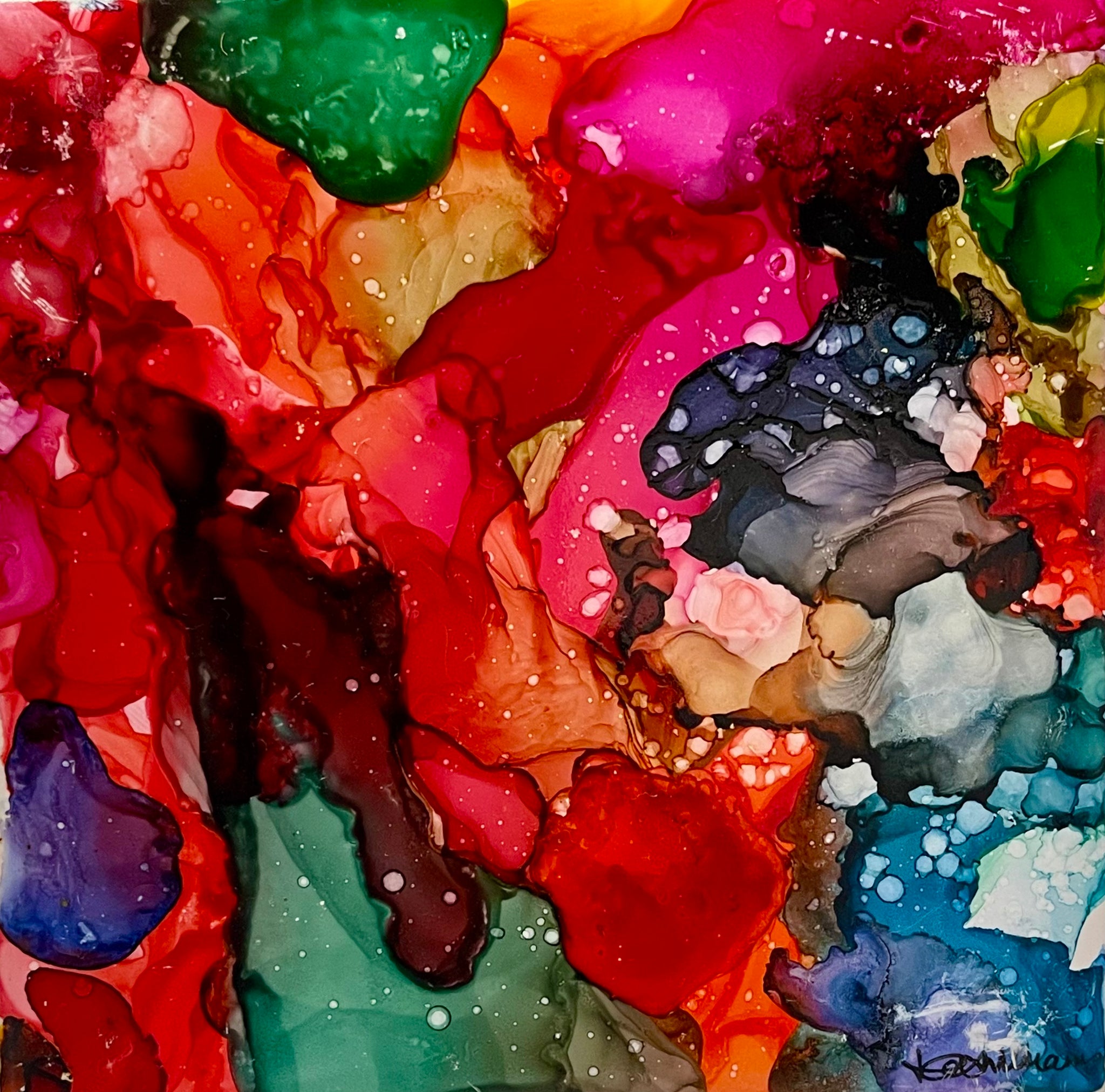 This, That and the Other brings whimsical charm to any space with its vibrant alcohol ink design. Hand-created on a petite 3x3 ceramic tile, this one-of-a-kind piece captures spontaneous color and movement that makes it perfect for a desk, shelf, or gallery wall. Ideal for art lovers who appreciate bold, expressive work with personality to spare.
